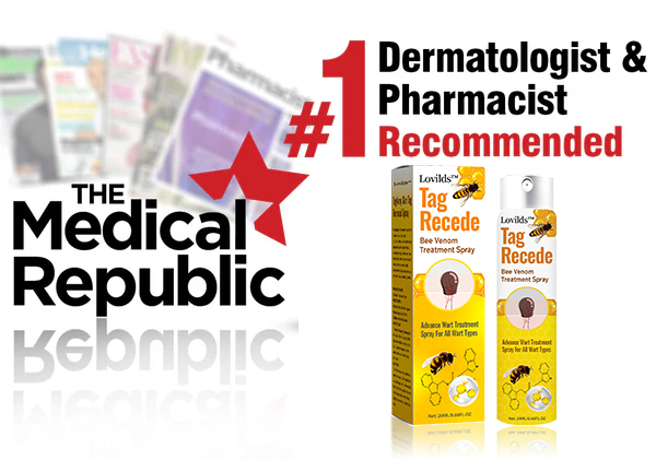 Parmi les pharmaciens qui recommandent une solution de soin de la peau pour les acrochordons, le psoriasis, la rosacée ou d'autres problèmes divers, le spray de traitement au venin d'abeille TagRecede était de loin le premier choix. L'enquête a en outre révélé que des millions de recommandations de dermatologues et de pharmaciens sont faites chaque année à des clients recherchant un soutien sans ordonnance pour divers problèmes de peau.